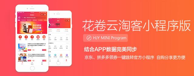 花卷云小程序支持京东、拼读多商品直接跳转对应官方小程序领券自购,小程序自动同步订单和分佣