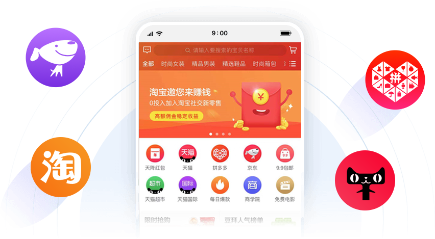 除对接淘宝联盟、京东联盟、多多进宝等官方联盟外,提供主流第三方淘客优质商品库平台