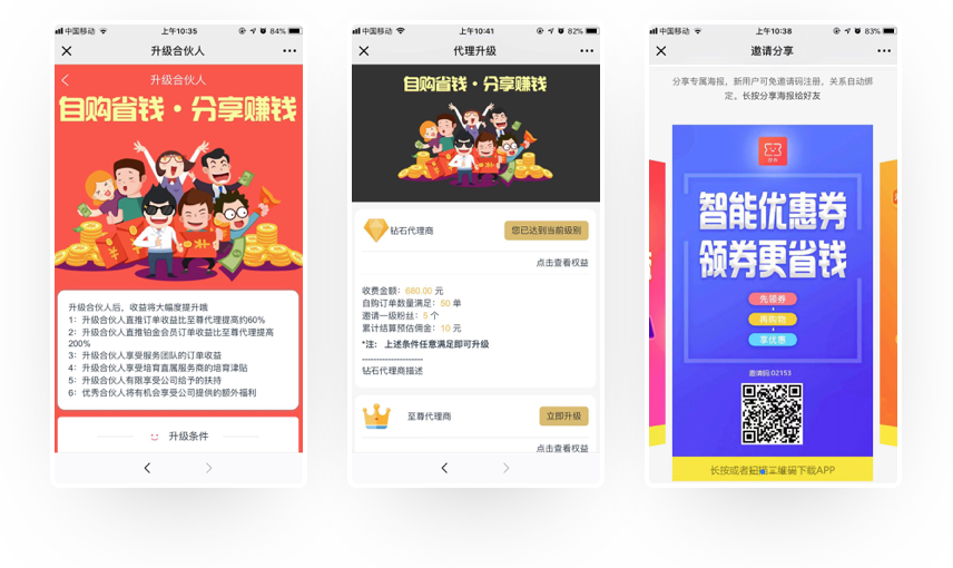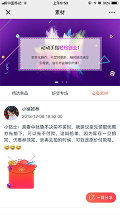 专属海报分享好友注册成为下线,还有限时秒杀、达人说等营销功能合力助推粉丝活跃度